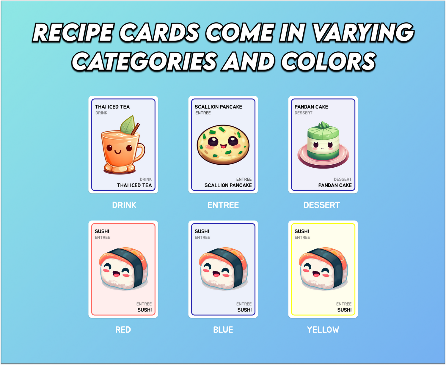 Recipe cards consist of delicious Asian drinks, entrees and desserts.